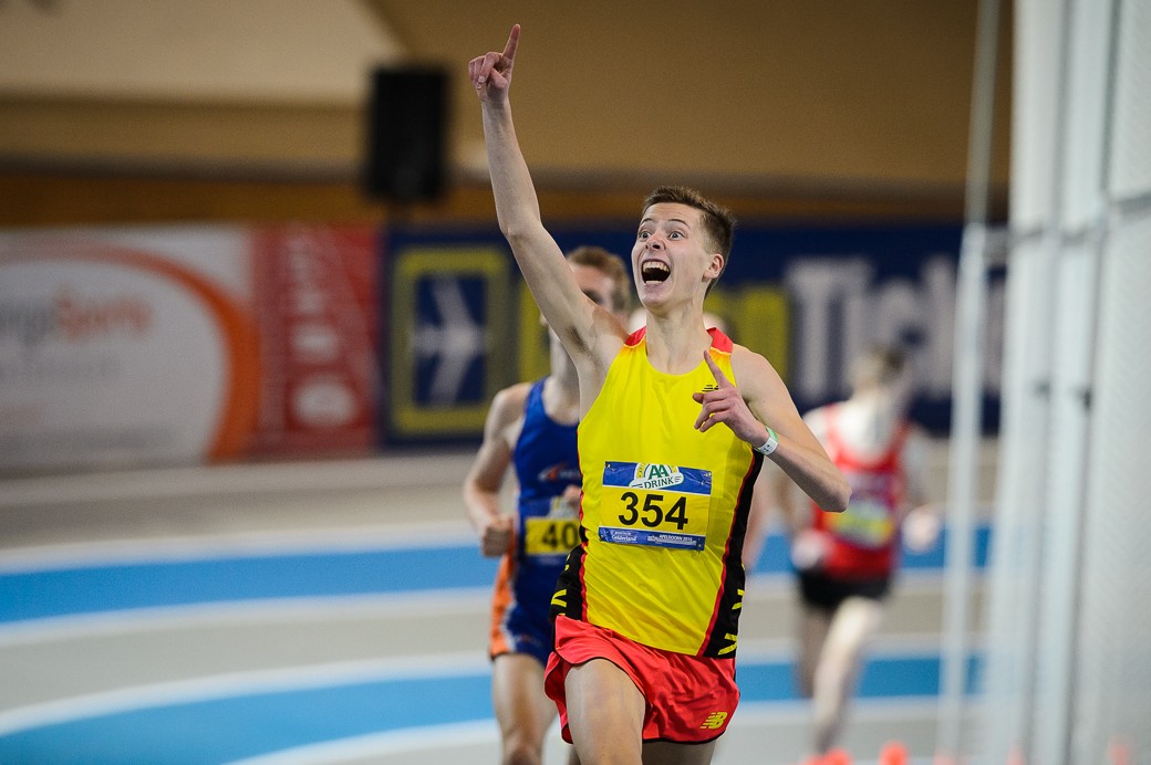Apeldoorn- Afgelopen weekend werd het Nederlands Kampioenschap indoor voor junioren gehouden in het Omnisport centrum te Apeldoorn. Negen atleten van het TDR jeugdteam stonden aan de start. Beste prestatie dit weekend werd neergezet door Bram Anderiessen die een gouden medaille mee naar huis mocht nemen. Zaterdag 28 februari Sten Stoltenborg mocht het spits afbijten op dit NK. De atleet van Haarlemmermeer liep een degelijke 3000 meter race en eindigde daarmee op de 7e plek. Niet veel later was het de beurt aan Kim Traas op de 400 meter. In een persoonlijk record van 60.81 liep zij naar een 4e plek, maar dit was helaas niet snel genoeg om voor een finale plek in aanmerking te komen. Het volgende onderdeel waarop een TDR-atleet aan de start stond was de 1500 meter voor junioren B. Bram Anderiessen liep gecontroleerd naar een eerste plek en kon zich gaan opmaken voor de finale van zondag. Edwin Sjerps liep de 1500 meter bij de jongens A, maar werd met een 5e plaats in de series uitgeschakeld. De series 800 meter waren ook op zaterdag en Laura Boekel won haar serie en plaatste zich daarmee voor de finale de volgende dag. Eveneens op de 800 meter, maar bij de jongens junioren B liep Stijn Roemer een PR met 3 seconden. De junior van het scholenproject laat hiermee zien goede progressie te boeken. Helaas was zijn tijd van 2.10.00 niet snel genoeg voor een finaleplek. Jesper Verbruggen liep net als Roemer een persoonlijk record, maar kwam met een 5e plaats op de 800 meter bij de Junioren A ook niet verder dan de series. Steven Feenstra kwam met een 2e plek en een tijd van 2.04.93 net te kort voor de finale. Zondag 1 Maart De eerste finale op deze zondag was de 1500 meter voor meisjes Junioren A. Laura Boekel liep een bekeken race en wist daarmee een bronzen medaille in de wacht te slepen. Helaas was hierna de pijp leeg. Vorig weekend dubbelen op het NK senioren en dit weekend de dubbel op het NK junioren bleek een te druk programma, waardoor de Nova atlete als 6e eindigde op de 800 meter. Bram Anderiessen stak met kop en schouders boven de rest van het veld uit in de 1500 meter finale. De atleet van AKU had een sterk eindschot. Door de laatste 500 meter in 1.13 af te leggen wist hij een gouden medaille binnen te slepen. De eerstejaars B-junior, die eerder dit seizoen ook al de crosstitel behaalde, laat hiermee zien een goed winterseizoen te draaien. “Twee titels in 1,5 maand tijd, het jaar is voor mij alvast goed begonnen!” aldus de jonge TDR atleet.